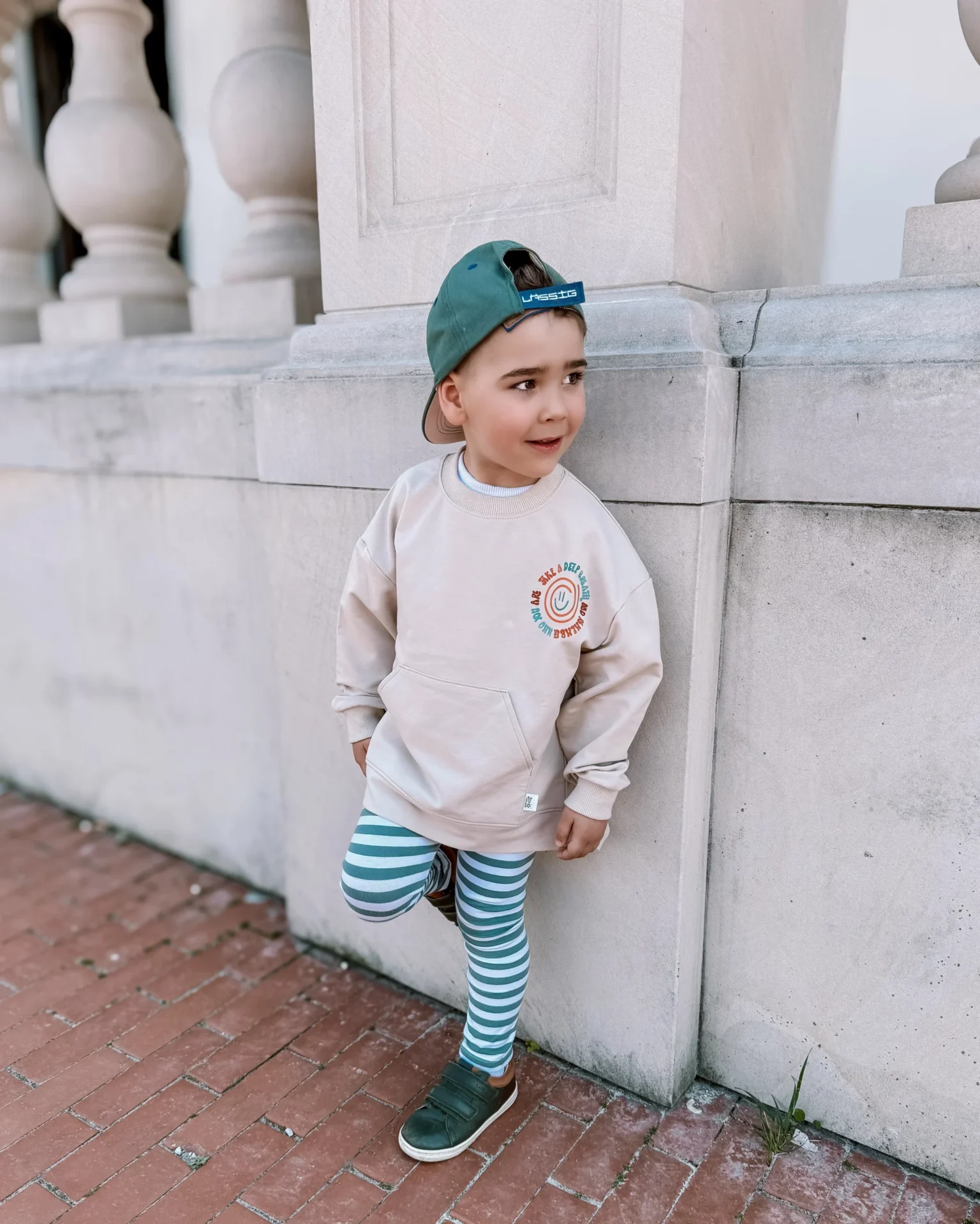 Bluza stworzona dla wielbicieli stonowanych kolorów w odcieniach beżu i brązu z nutką turkusowego szaleństwa. Grafika idealnie skomponuje się z klasycznymi leginsami w kolorze karmelu lub czymś bardziej 'szalonym’ jak szachownica czy paski 😉 .