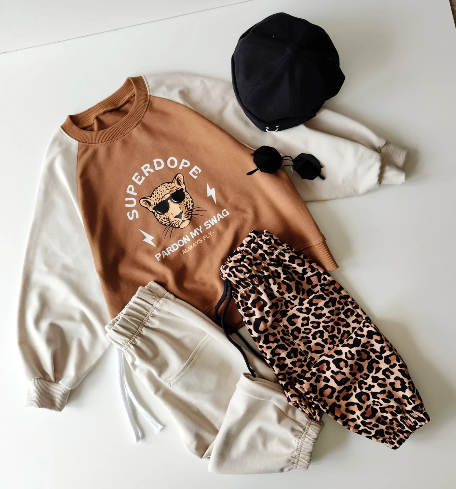 Jeśli dotąd byłaś przekonana, że cętki to wzór zarezerwowany tylko i wyłącznie dla dziewczynek to jesteś w dobrym miejscu, aby zmienić zdanie 😉 Ta bluza to idealna baza do łączenia z naszymi spodniami w cętki. Tę grafikę znajdziesz również na t-shircie jasno beżowym. Koniecznie zerknij na naszego instagrama, aby zaczerpnąć inspiracji do świetnych stylówek.