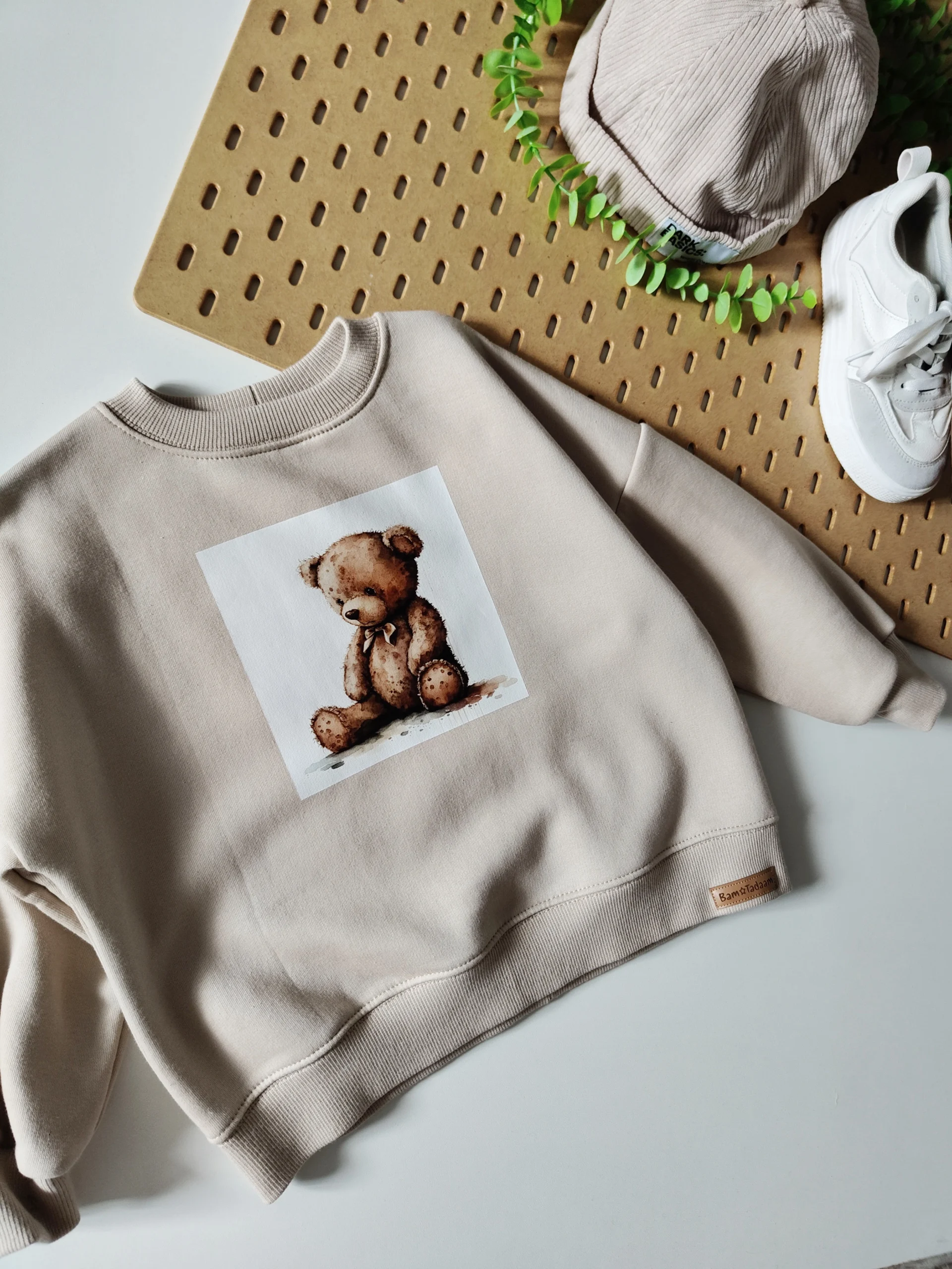 Luźny fason, urocza grafika , ocieplany materiał i cudowne połączenie kolorów .