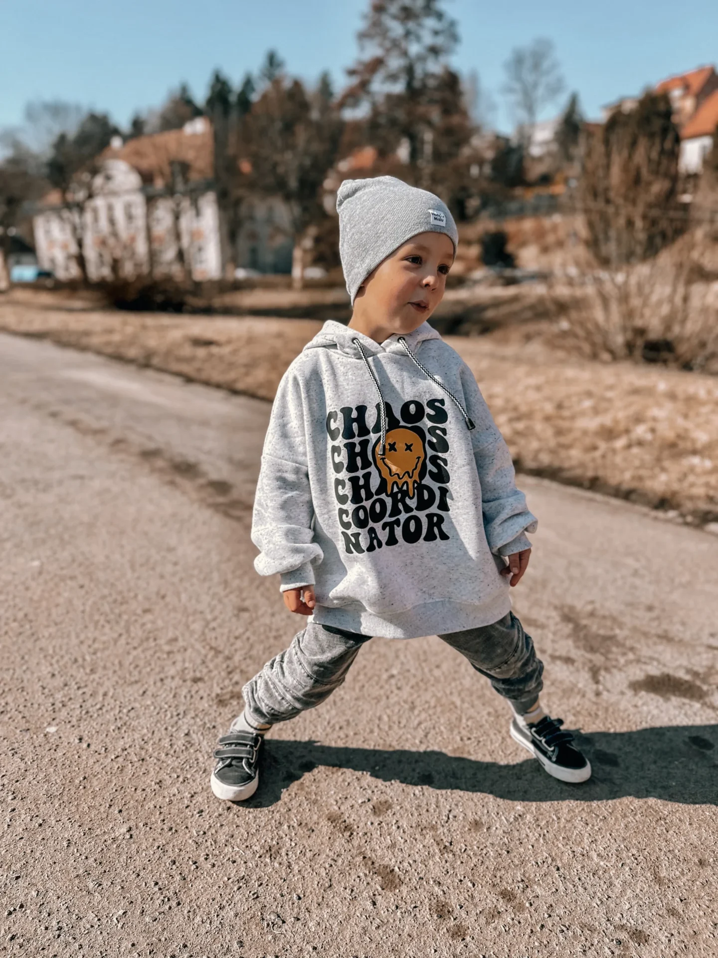 - Materiał – dresówka pętelka, 97% bawełna, 3% elastanu, wyprodukowany w Polsce,