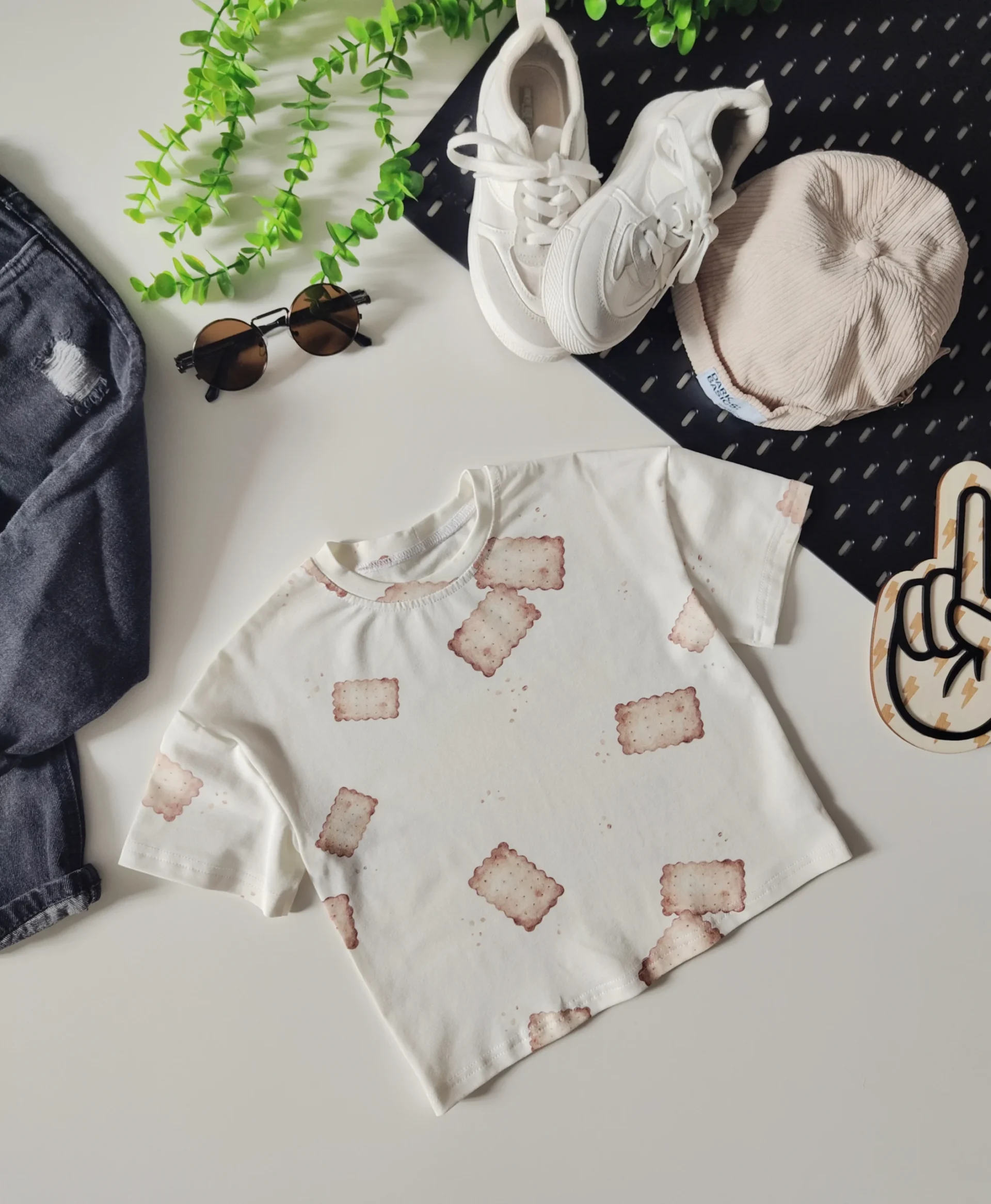 Klasyk, który stworzy ziomalską stylówkę ze wszystkim ;). T-shirt o fasonie obwodowo pomiędzy klasykiem, a oversize’em. Osobiście uwielbiam ten fason na swoich dzieciach.