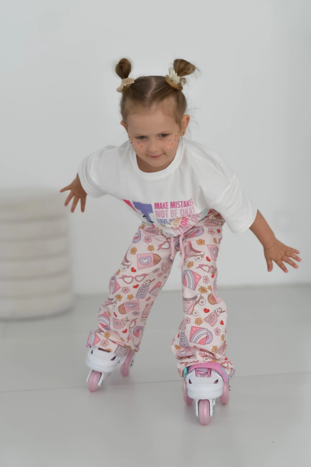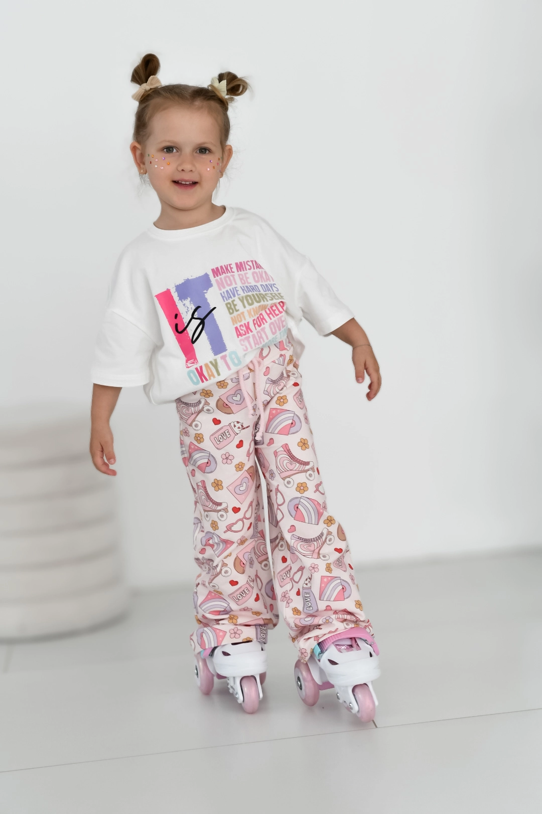 Dla odmiany stworzyłam serię koszulek w kolorze ecru, który tak samo jak biały idealnie skomponuje się z każdym kolorem. Ta grafika aż się prosi o uzupełnienie stylówki klasycznymi leginsami w kolorach pastelowych (banan, mięta, lawenda, limonka, melon).