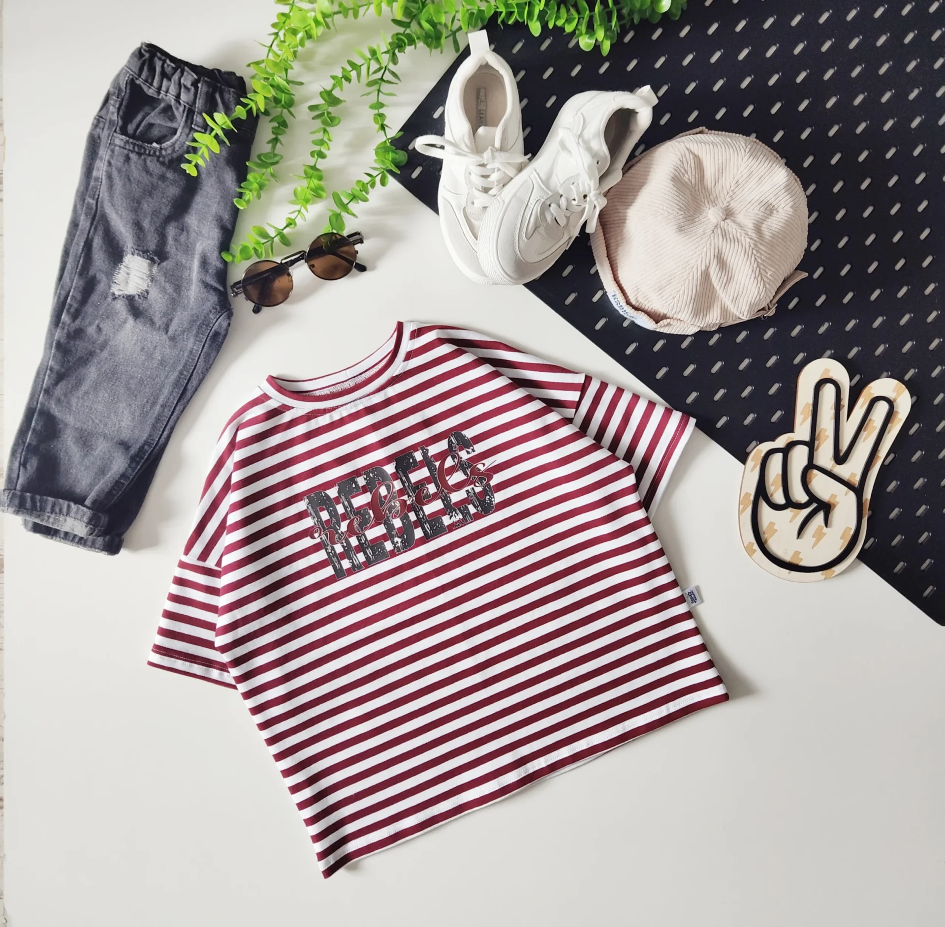 T-shirt PASKI BORDOWO-BIAŁE „Rebels” >od ręki 116/122<
