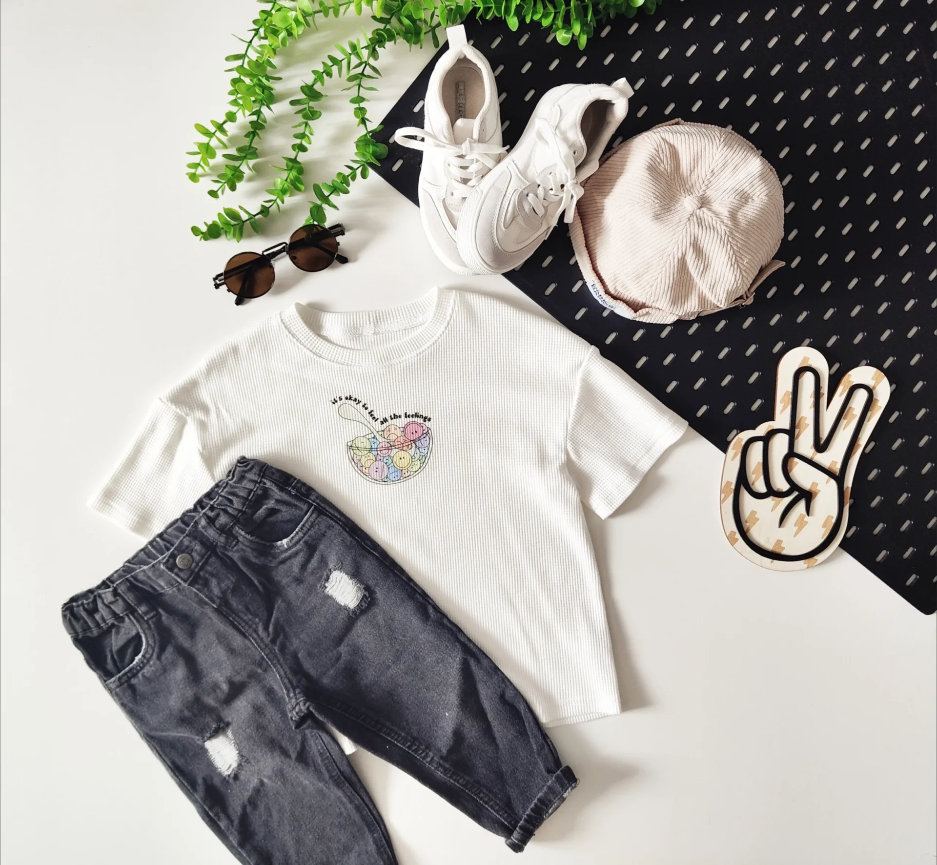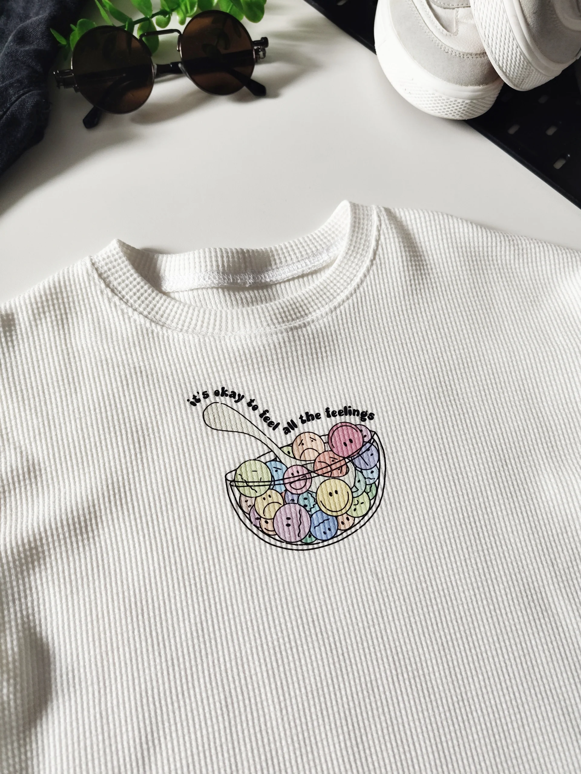 T-shirt WAFELEK ECRU „Feel all the feelings …” >od ręki 104/110<